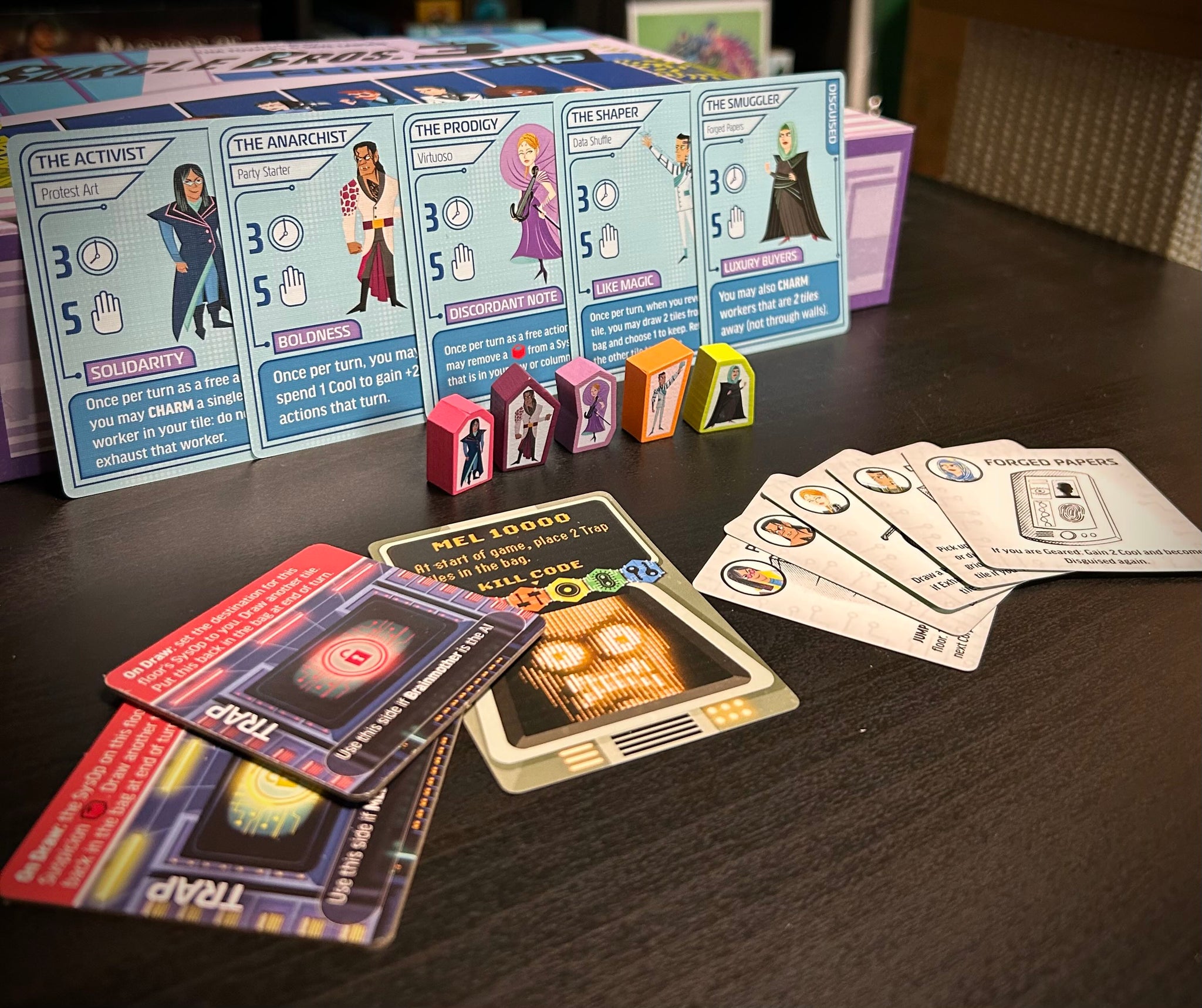 2 new AI bosses - these are the evil computer systems running the whole building that you have to defeat to win the game. They introduce a new set of trap tiles to the tile bag that make your mission extra risky!