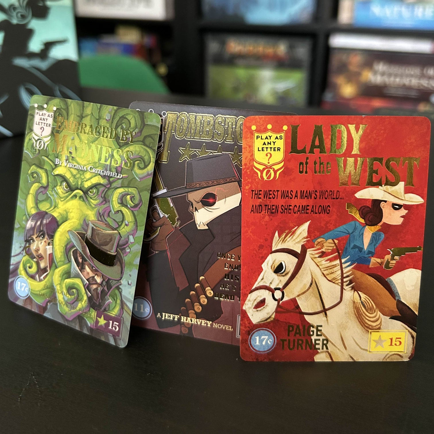 Deluxe edition includes 2 double sided stitched playmats, chipboard genre tiles, metal book-shaped trackers, 8 foil novel covers, sleeves, and more!